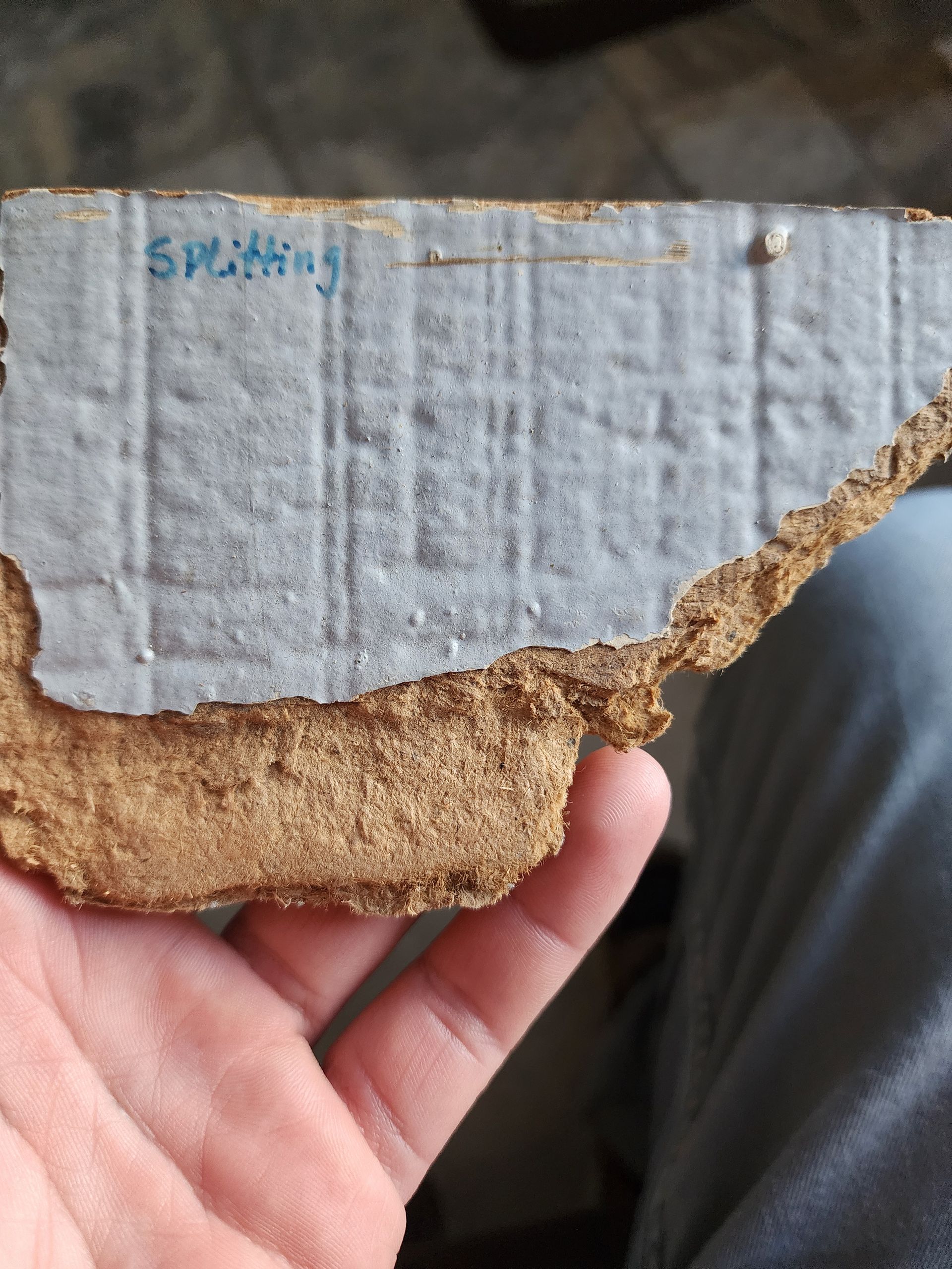 The photo on the left shows what a lot of siding from the 80’s and 90’s is actually made of. While it looks like wood from the outside, it’s not solid wood. It’s essentially a pressed wood fiber product which is similar to compressed cardboard. Its commonly known as masonite siding. This material relies heavily on its paint coating to keep moisture out. Once that protective layer weakens, the siding can deteriorate quickly